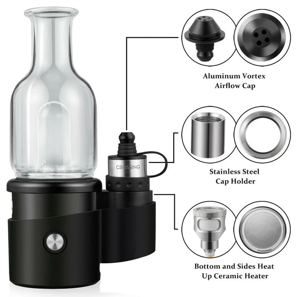 The Crossing Core E-Rig produces very smooth draws, but if you want your pulls to be downright silky, the Pyramid Glass Top Water Bubbler Attachment is the answer to it all. This simple, yet sophisticated attachment uses the soothing qualities of water to iron out even the harshest of hits, leaving you with the cool, refreshing kiss of vapor you demand from a high-end portable rig. The water filtration provided by this bubbler attachment makes for an even smoother ride without the turbulence of harsh contaminants and debris.