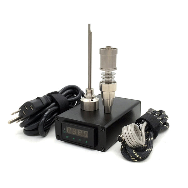 2. Once unit has ben plugged into a power socket, press the power button (silver round button ) to power the unit on . Only power on the unit when the coil is attached to the provided nail securely .