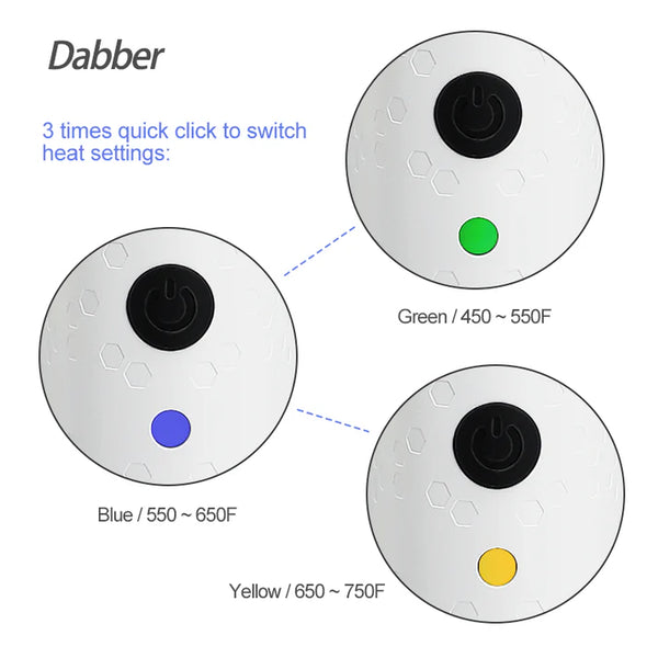 3. You must click the button 3 times quickly to switch heating settings. When it flashes the Green light, TEMP is 450-550F; Flashing Blue light, TEMP is 550-650F; Flashing Yellow light, TEMP is 650-750F.
