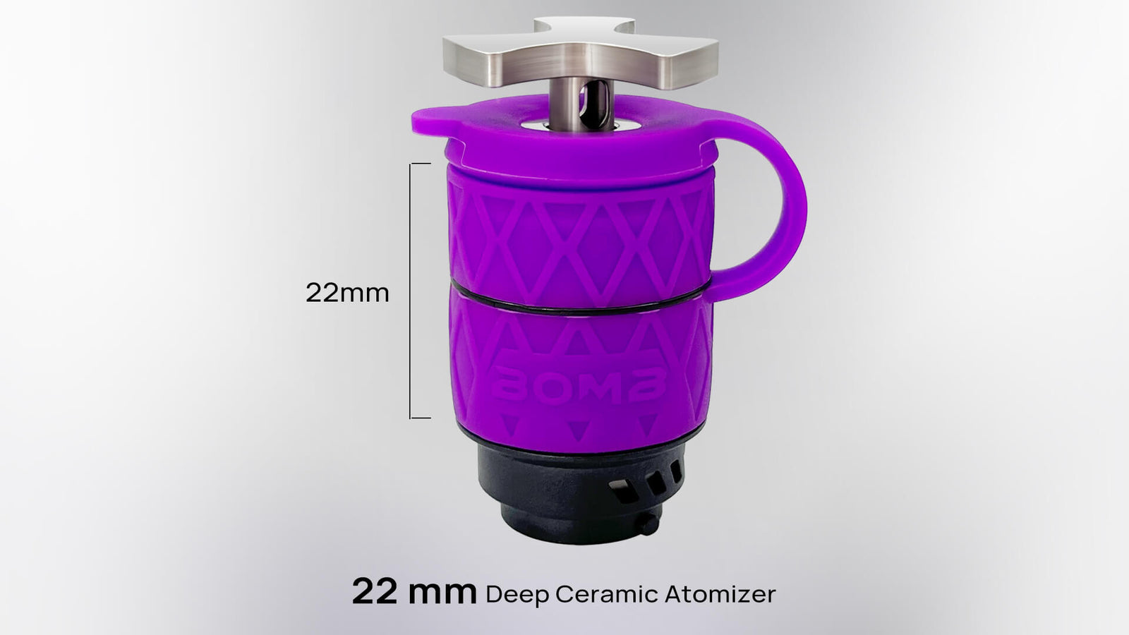 The depth of the ceramic bucket is increased from 18mm to 22mm, to better prevent wax splashes and enhance vaporization to get denser clouds.
