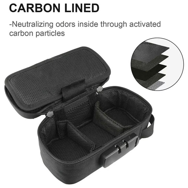 Smell proof zipper with mesh activated carbon fiber, to absorb odor and contain smells in order for easy travel and transport. Further, the bag is constructed with carbon technology for preserving all types of goods you store inside.